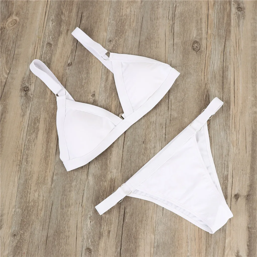 | Soild White Button Bikini 2020 Push Up Swimsuit Women 2 Pieces Set Sexy Swimwear Women Tanga Bikini Mujer Brazilian Biquini |