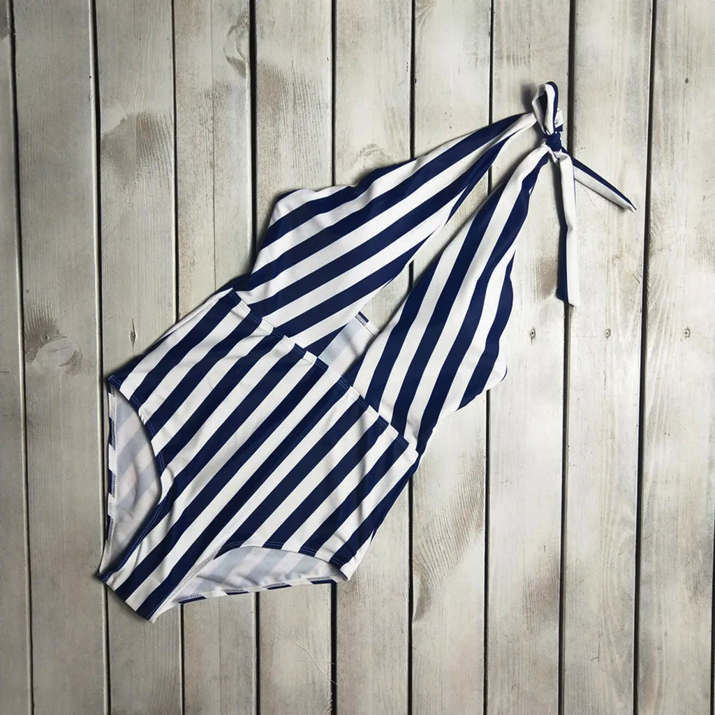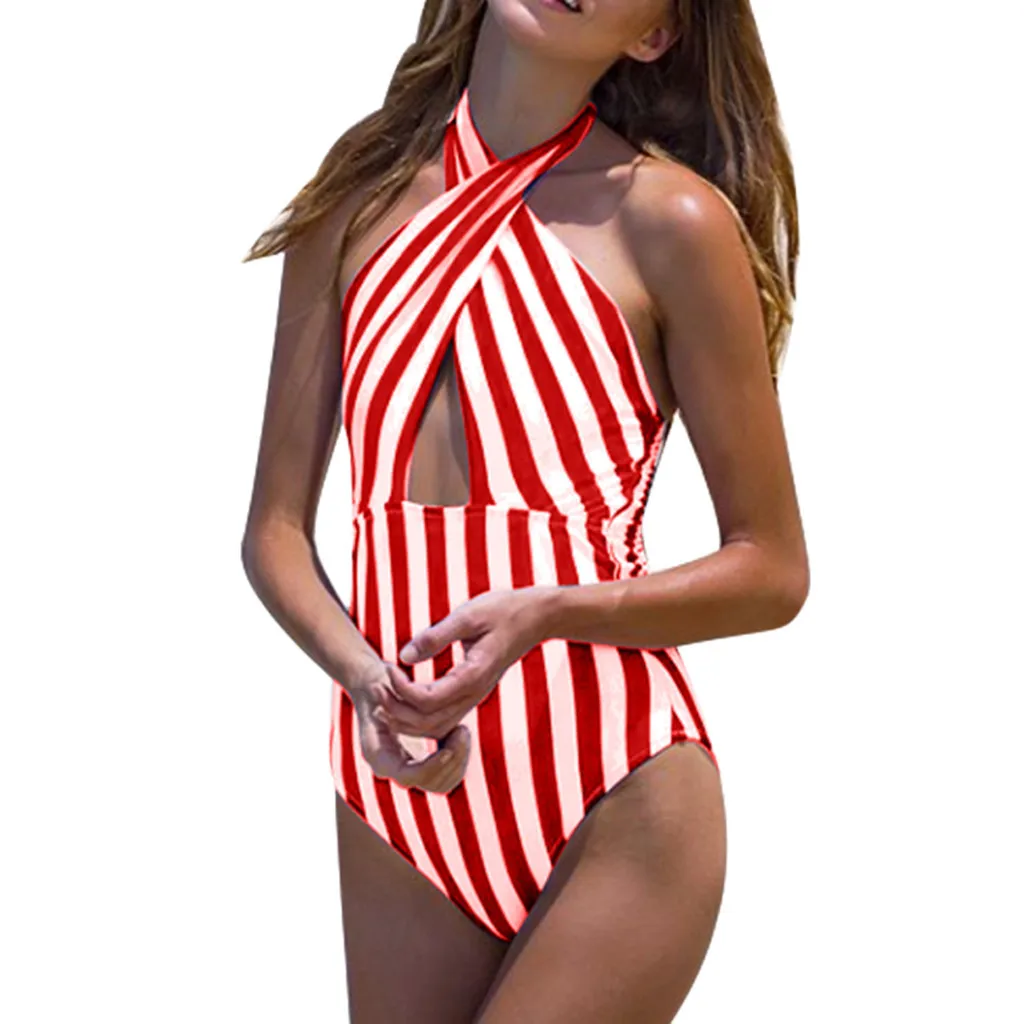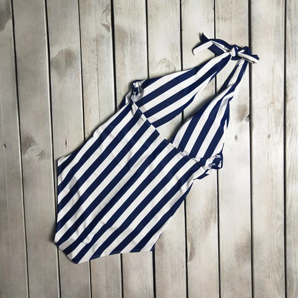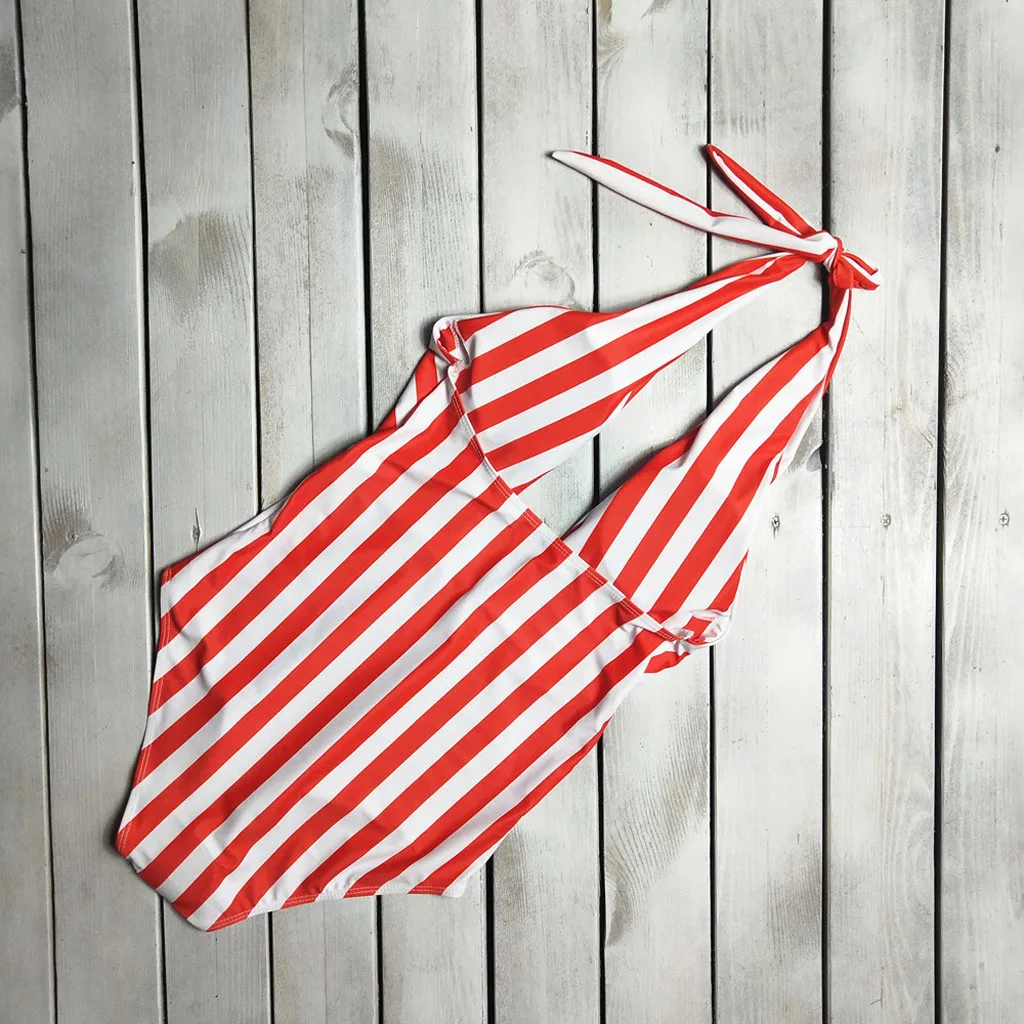 | Summer Sexy Backless Striped Women Swimsuit One Piece Bathing Suit Ladies Swimwear Monokini Push Up Padded Swimming Wear |