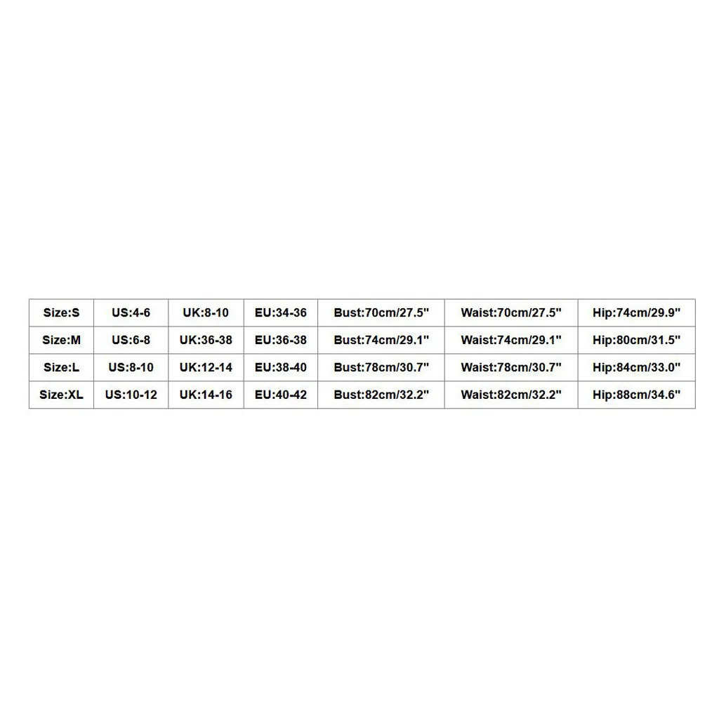 | Size | US | UK | EU | Bust | Waist | Hip |