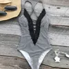 Vintage Striped One Piece Swimsuit Lace Patchwork String Swimwear Women High Waist 2020 Tankini Bikini Set Push Up Beachwear