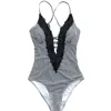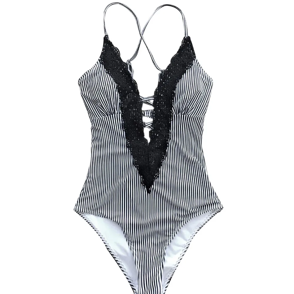 | Vintage Striped One Piece Swimsuit Lace Patchwork String Swimwear Women High Waist 2020 Tankini Bikini Set Push Up Beachwear |