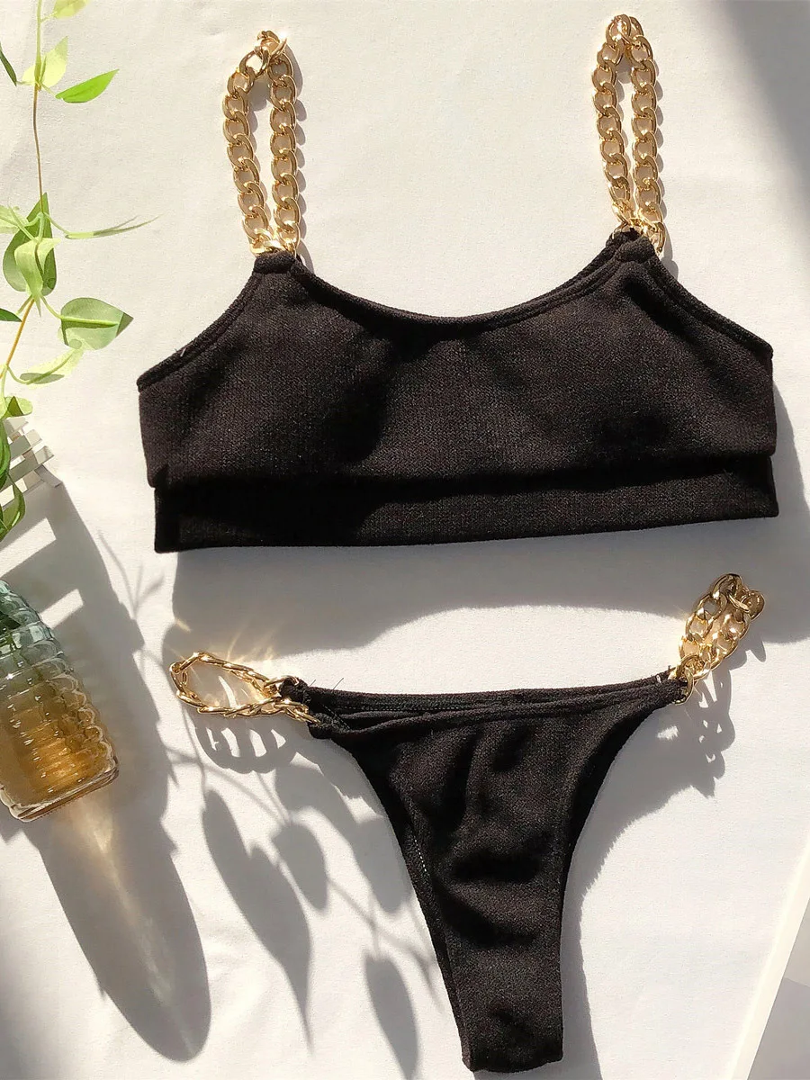 | Women Bikini Sexy Swimwear Swimsuit Strappy Cutout Crisscross Swim Push Up Female Swimming Hot New 2020 Sling Chain Straps |