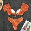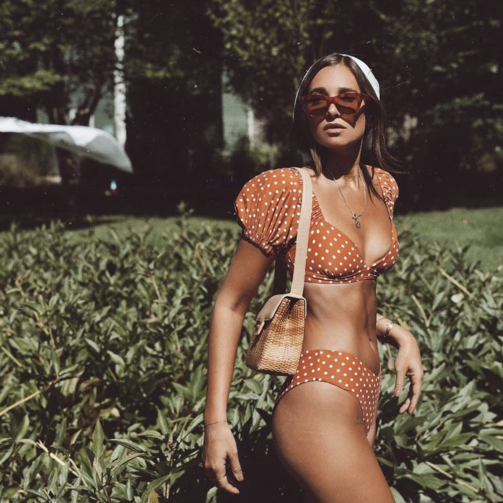 | ZTVitality Print Dot Bikini 2020 New Arrival Padded Short Sleeve Swimsuit Female Mid Waist Sexy Swimwear Women Brazilian Biquini |
