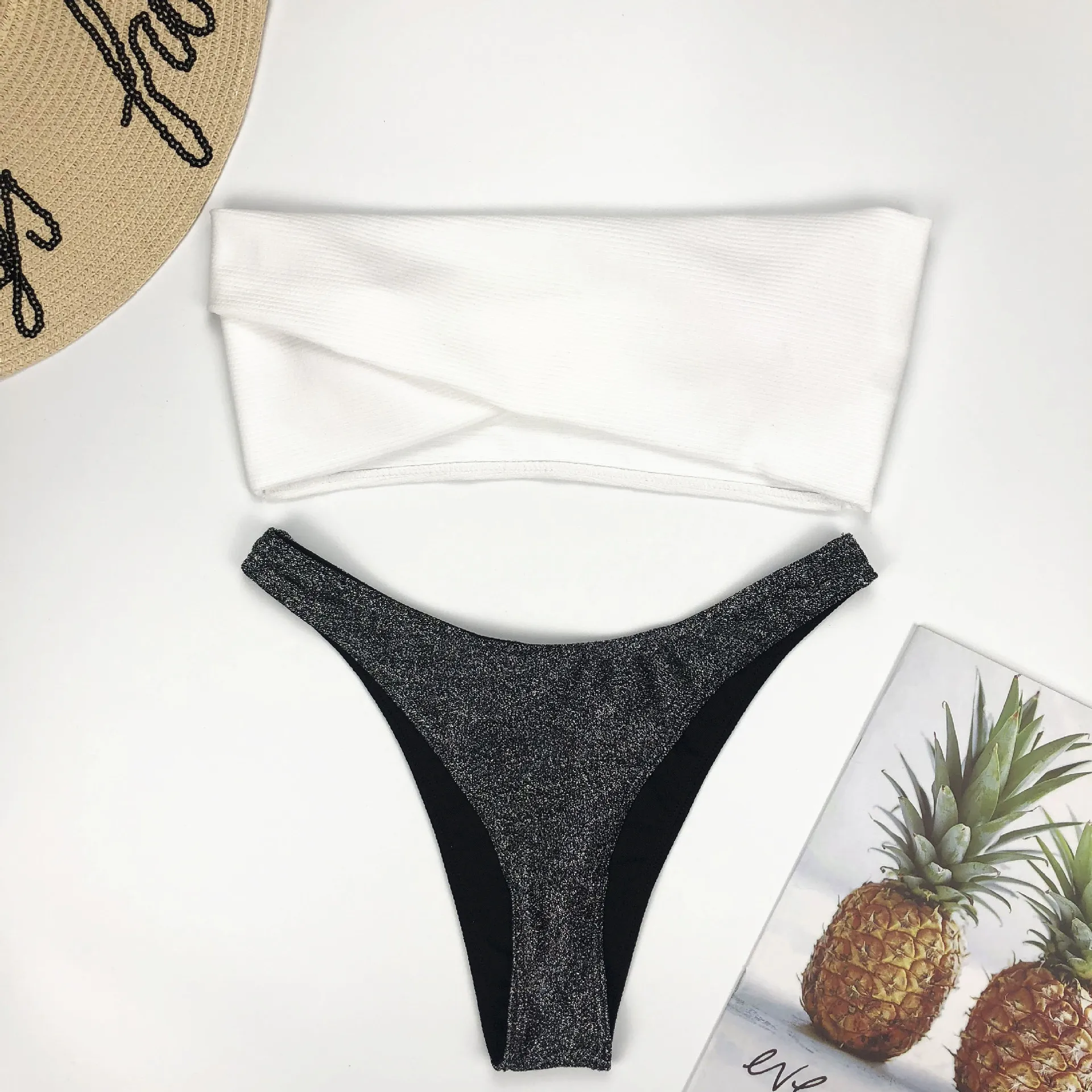 | 2019 New Summer Bandeau Sexy Bikini Push Up Swimwear Women Swimsuit Ribbed Bikini Set Biquini Summer Beach Bathing Suit |