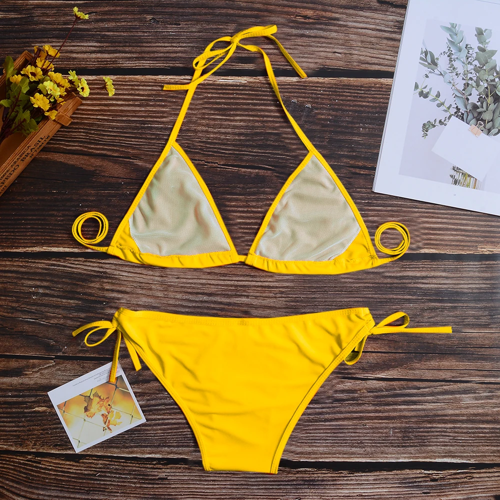2020 Women Micro Bikini Set Push Up Swimwear Solid Beach Bathing Suit Brazilian Thong Swimsuit For Girls Bikini Swim Suit Femme