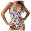 Women Fashion Plants Floral Print Sleeveless Diving Surfing Suit Set Beach