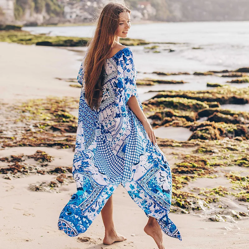 | Plus size Cotton Beach Maxi Dress Cover up Bathing suit Cover ups Salida de Playa 2020 Kaftan Beach Swimwear Cover up Playeros |