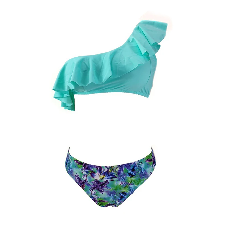 | Push Up Bikini Swimsuit Women 2020 Sexy Ruffle Bandeau One Shoulder Swimwear 2 Piece Bathing Suit Women Beachwear Swimming suit |