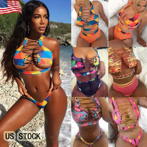 Women High Waist Push-up Padded Bra Bandage Tassel Sexy Fashion Lovely Bikini Set Swimsuit Swimwear Bathing