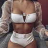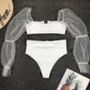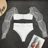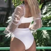 | ZTVitality Long Sleeve Dot Mesh Patchwork White Bikini 2020 New Arrival Padded Strapless High Waist Swimsuit Sexy Swimwear Women |
