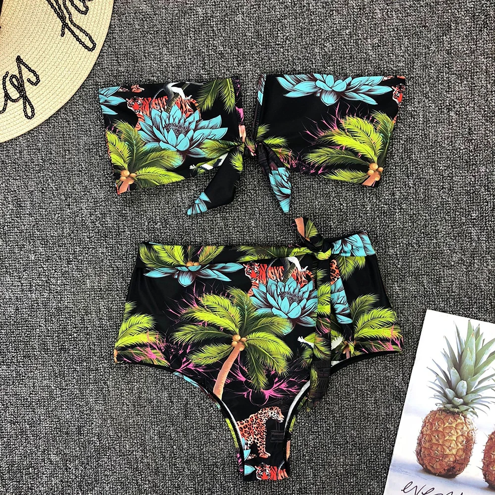 ZTVitality Sexy Biquini Leaf Print Bikini 2019 Hot Sale Padded Backless Strapless Bikinis High Waist Swimsuit Swimwear Women L