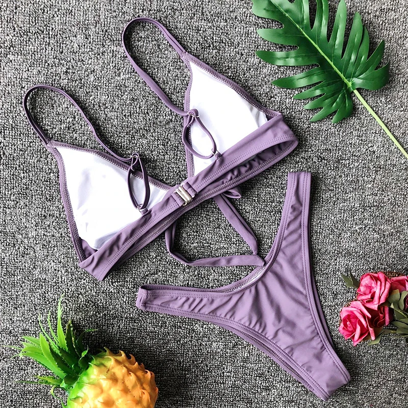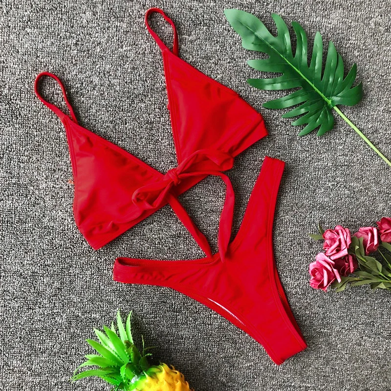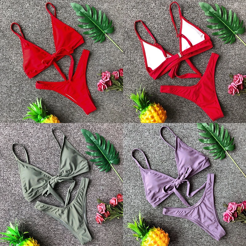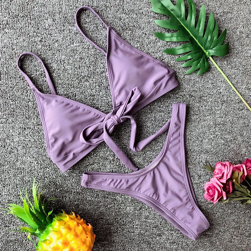 | ZTVitality Women Sexy Solid Bow String Push Up Bikini 2019 New Arrival Beach Padded High Leg Swimsuit Brazilian Swimwear Women |