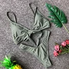 Vintage Female Ribbed Swimsuit High Waist Bikini Women V Shape Bra Swimwear Two-pieces Bikini set Bather Brazilian Bathing Suits